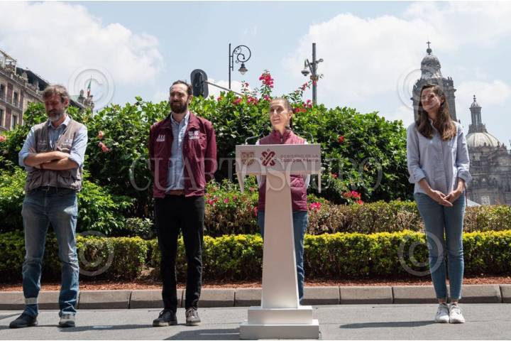 Claudia Sheinbaum, jefa de Gobierno; Andrés Lajous, secretario de Movilidad y Claudia Stella Curiel de Icaza. Secretaria de Cultura ofrecieron una conferencia de prensa para hablar sobre el Día Mundial de la Bicicleta