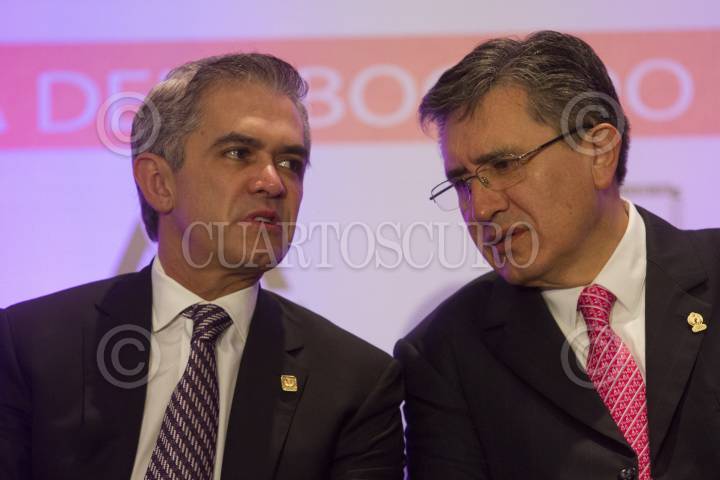 MÉXICO, D.F., 10JULIO2015.- Miguel Ángel Mancera, Jefe de Gobierno y Rodolfo Ríos Garza, Procurador General de Justicia del DF, durante el desayuno con motivo del Día del Abogado. FOTO: MOISÉS PABLO /CUARTOSCURO.COM