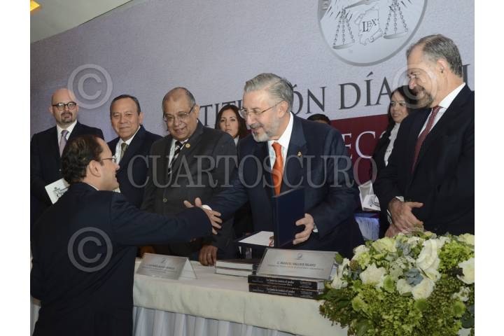 CHILPANCINGO, GUERRERO, 12JULIO2017.- Héctor Astudillo Flores, gobernador del estado, hizo entrega del galardón “Alberto Vázquez del Mercado” al abogado Alfonso Neri Carreto en la sala de la Republica de Casa Guerrero, esto con motivo del día del abogado. FOTO: JOSÉ I. HERNÁNDEZ /CUARTOSCURO.COM