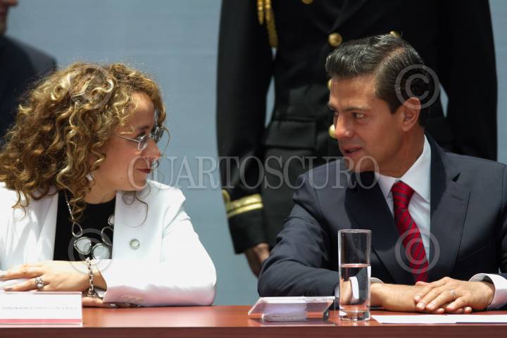 CIUDAD DE MÉXICO, 12JULIO2017.- La diputada Sharom Cuenca y Enrique Peña Nieto, Presidente de México, durante la celebración del Día del Abogado, en el Palacio Nacional. FOTO: MOISÉS PABLO /CUARTOSCURO.COM