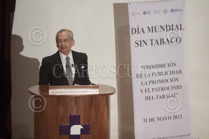 MÉXICO, D.F., 31MAYO2013.- El doctor Raúl Cicero Sabido durante su discurso en la ceremonia Día Mundial Sin Tabaco "Prohibición de la Publicidad la Promoción y el Patrocinio del Tabaco" en el Hospital General de México. En el acto se develó una placa conmemorativa de la creación de la "Unidad de Clínica contra el Tabaco" la cual lleva su nombre. FOTO: MOISÉS PABLO /CUARTOSCURO.COM