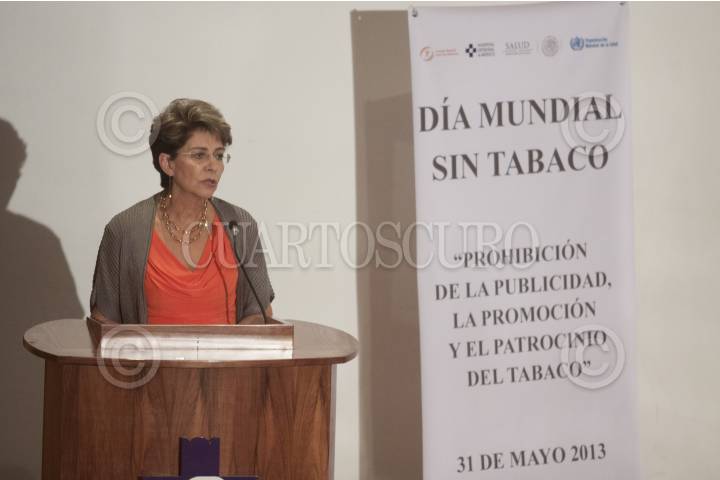 MÉXICO, D.F., 31MAYO2013.- La Secretaria de Salud Mercedes Juan durante su discurso en la ceremonia Día Mundial Sin Tabaco "Prohibición de la Publicidad la Promoción y el Patrocinio del Tabaco" en el Hospital General de México. En el acto se develó una placa conmemorativa de la creación de la "Unidad de Clínica contra el Tabaco" Dr. Raúl Cicero Sabido. FOTO: MOISÉS PABLO /CUARTOSCURO.COM