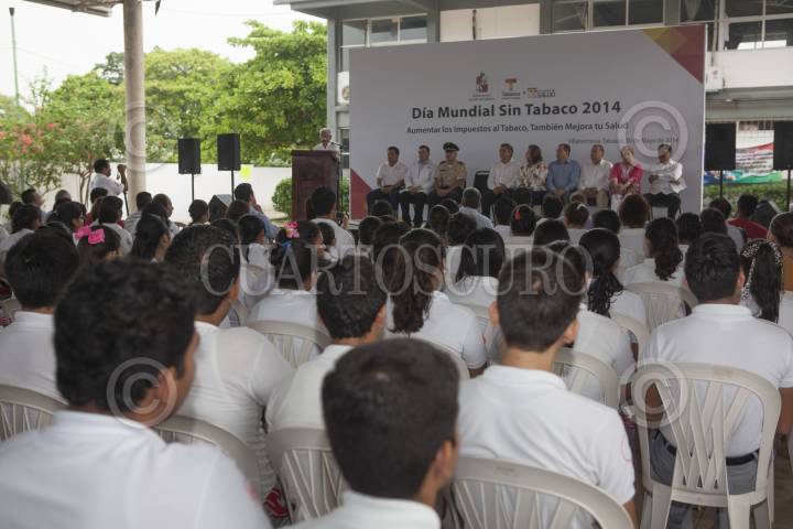 VILLAHERMOSA, TABASCO, 30MAYO2014.- Autoridades del sector salud y de educación celebraron en el plantel numero 28 del Colegio de Bachilleres el Día Mundial Sin Tabaco, en donde expusieron que la mejor forma de erradicar este consumo es la incrementar los impuestos al tabaco, debido a que pudiera que con los precios no este al alcance de los compradores o posibles consumidores. Ahí también entregaron reconocimientos a instituciones y edificios libres de humo. En la imagen distintos aspectos generales del evento y del plantel educativo ubicado en la colonia José María Pino Suárez. FOTO: MARCO POLO GUZMÁN HERNÁNDEZ /CUARTOSCURO.COM