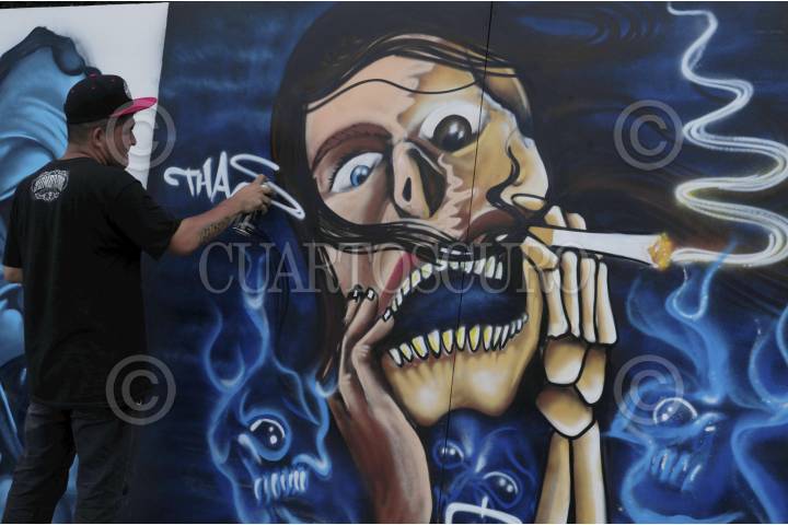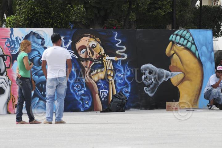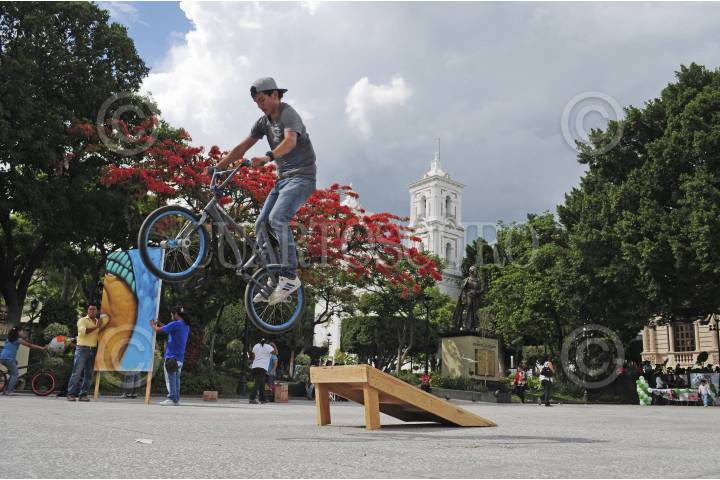 CHILPANCINGO, GUERRERO, 30MAYO2014.- Con motivo del Día Mundial sin Tabaco, esta mañana se llevó a cabo un evento en donde jóvenes realizaron actividades y grafittis alusivos a los efectos dañinos ocasionados por el tabaco. Realizaron además acrobacias en bicicletas en el zócalo de la capital del estado. FOTO: JOSÉ I. HERNÁNDEZ /CUARTOSCURO.COM