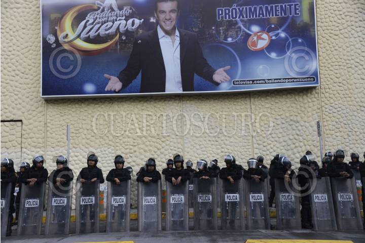 MÉXICO, D.F., 01MAYO2014.- Jóvenes autodenominados anarquistas realizaron una manifestación partiendo del Monumento a la Revolución, con destino al Zócalo Capitalino, para posteriormente partir rumbo a televisa chapultepec. Al llegar a las inmediaciones de televisa, el contingente, reducido en número ya, retornó al metro pues las instalaciones de la televisora estaban ya rodeadas de elementos policiales del GDF. Los anarquistas marcharon para conmemorar a "Los Mártires de Chicago", cinco trabajadores anarquistas sentenciados a muerte en el siglo XIX en la ciudad de Chicago, tras participar en las manifestaciones obreras que reivindicaban la jornada laboral de 8 horas, el primero de Mayo de 1886. FOTO: PEDRO ANZA /CUARTOSCURO.COM