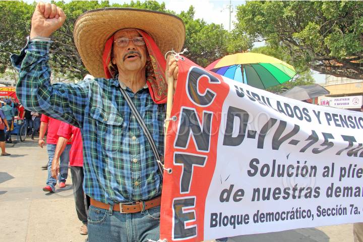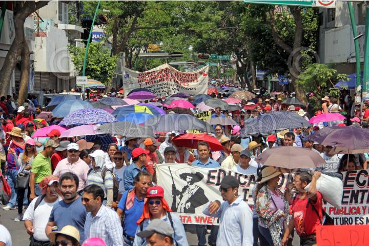 TUXTLA GUTIÉRREZ, CHIAPAS, 01MAYO2018.- Maestros pertenecientes a la Coordinadora Nacional de Trabajadores de la Educación, Sindicatos Estatales y Municipales, marcharon la mañana de este martes en la capital chiapaneca en conmemoración al Dia del Trabajo. FOTO: JACOB GARCÍA /CUARTOSCURO.COM