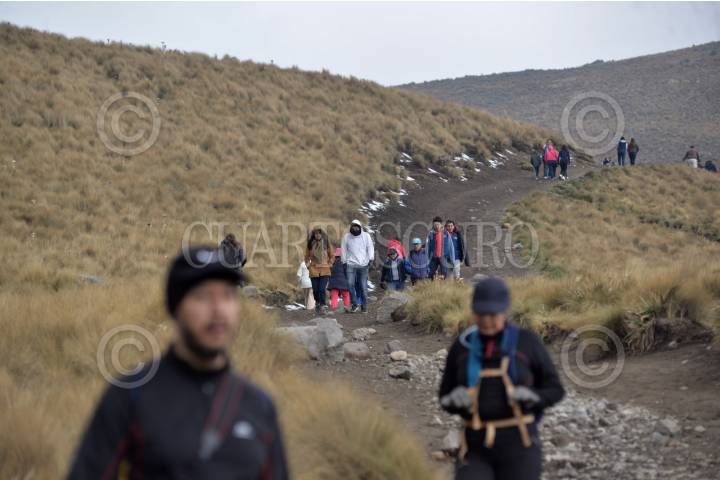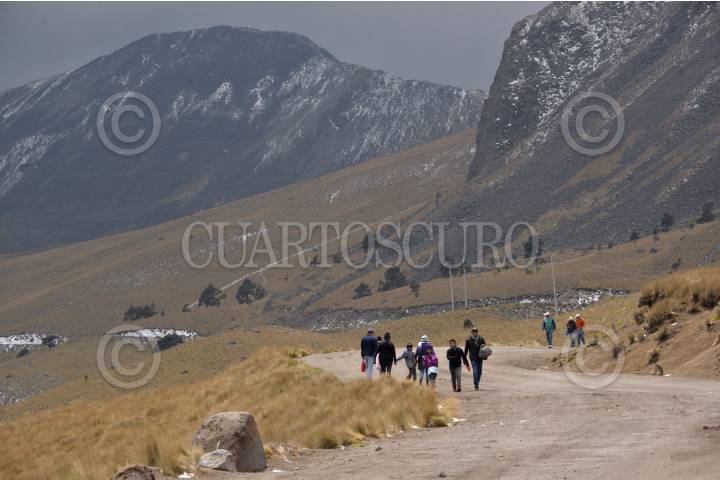 TOLUCA, ESTADO DE MÉXICO, 01MAYO2018.- Aprovechando el día de descanso muchas personas acudieron al Nevado de Toluca, el cual presenta en algunas partes granizo desde el día de ayer, para poder llegar a la parte alta sólo se podía acceder a pie. FOTO: ARTEMIO GUERRA BAZ /CUARTOSCURO.COM