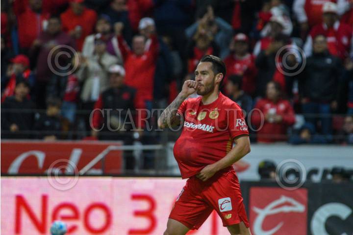 TOLUCA, ESTADO DE MÉXICO, 13SEPTIEMBRE2025.- Andrés Pereira defensa de los Diablos de Toluca festeja su anotación ante la escuadra de la Franja de Puebla, en el partido correspondiente a la jornada 8 del torneo Apertura 2025 de la Liga MX, con un marcador final 3-1. FOTO: CRISANTA ESPINOSA AGUILAR/CUARTOSCURO.COM