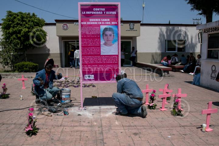 Diana Florencio, madre de Diana durante la instalación del memorial para su hija frente a la fiscalía de Chimalhuacán.