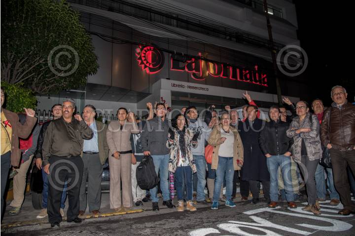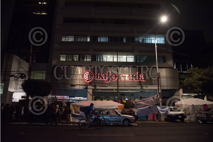 CIUDAD DE MÉXICO, 04JULIO2017.- A pesar de que venció el plazo para desalojar la huelga de los trabajadores de La Jornada y abrir las instalaciones, los miembros del sindicato no abandonaron el diario, yaque se encuentran amparados ante la declataria de que la huelga es inexistente. Durante la madrugada de hoy autoridades visitaron las instalaciones para solicitar la reapertura del periódico, petición que fue rechazada por los huelguistas FOTO: TERCERO DÍAZ /CUARTOSCURO.COM