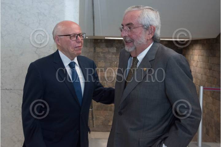 CIUDAD DE MÉXICO, 09OCTUBRE2019.- José Narro Robles, ex rector de la UNAM, y el actual rector de dicha Universidad Enrique Graue Wiechers, fueron invitados especiales durante de la ceremonia de la décima edición de los Premios Crónica los cuales se otorgaron a destacados mexicanos y a la Benemérita Universidad Autónoma de Puebla, por su trayectoria enfocada en aportes a la ciencia, la academia, la cultura, la comunicación pública y artística. FOTO: MARIO JASSO /CUARTOSCURO.COM