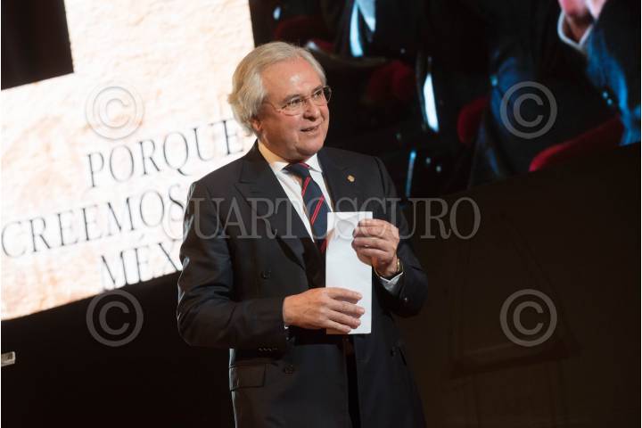 CIUDAD DE MÉXICO, 18OCTUBRE2023.- Jorge Kahwagi Gastine, director del periódico La Crónica de Hoy, durante su participación en la ceremonia de los Premios Crónica realizada en el Auditorio “Jaime Torres Bodet” del Museo Nacional de Antropología. FOTO: MARIO JASSO/CUARTOSCURO.COM