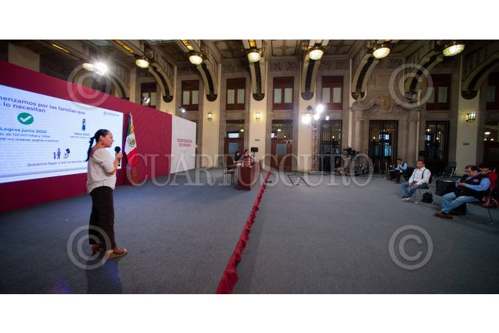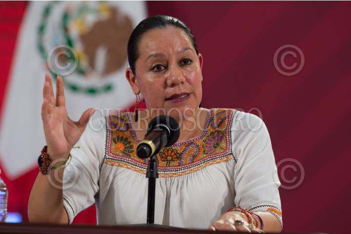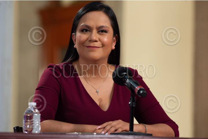 Ariadna Montiel Reyes, subsecretaria de Desarrollo Social y Humano durante la conferencia de prensa-informe diario sobre los créditos que otorga el gobierno.