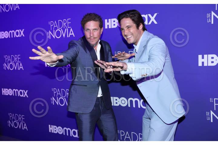 El director Gaz Alazraki y Diego Boneta durante la alfombra púrpura por el estreno de la película “El padre de la novia” en la Hacienda de los Morales.