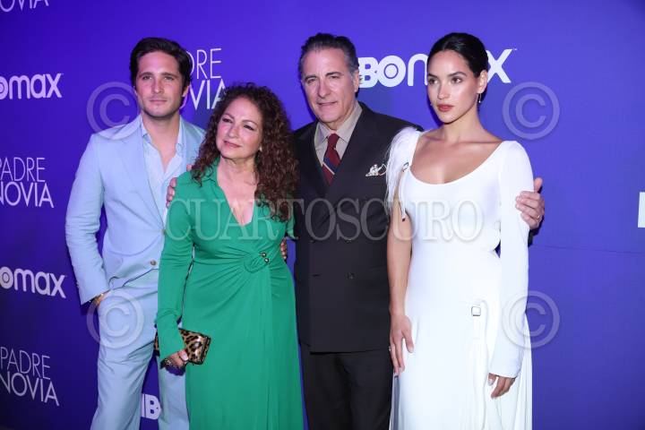 Diego Boneta, Gloria Estefan, Andy García y Adria Arjona durante la alfombra púrpura por el estreno de la película “El padre de la novia” en la Hacienda de los Morales.