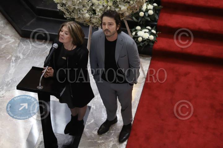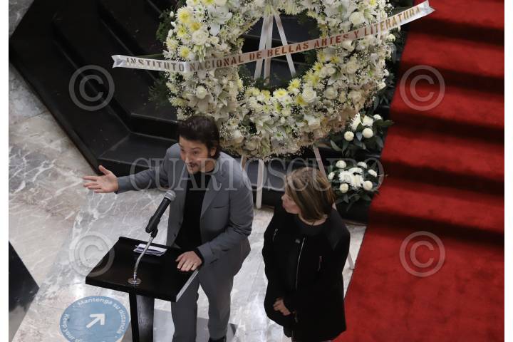 Diego Luna recoge las cenizas de su padre, el arquitecto y escenógrafo Alejandro Luna durante su homenaje póstumo en el Palacio de Bellas Artes.