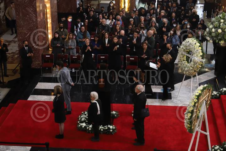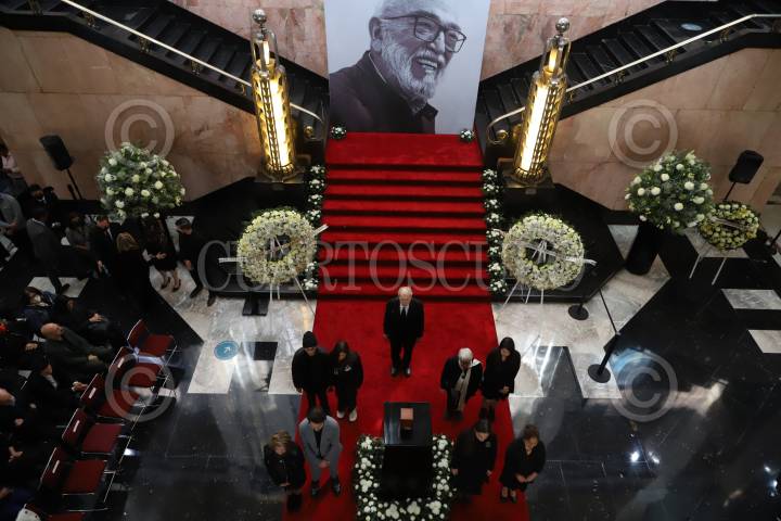 Guardia de honor de familiares y autoridades durante el homenaje póstumo al arquitecto y escenógrafo Alejandro Luna en el Palacio de Bellas Artes.