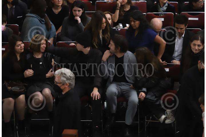 María Luna y Diego Luna durante el homenaje póstumo a su padre el arquitecto y escenógrafo Alejandro Luna en el Palacio de Bellas Artes.