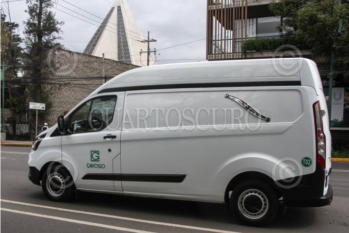Transporte funerario en donde se trasladó el cuerpo de Polly Olivares al Instituto de Servicios Periciales y de Ciencias Forenses.