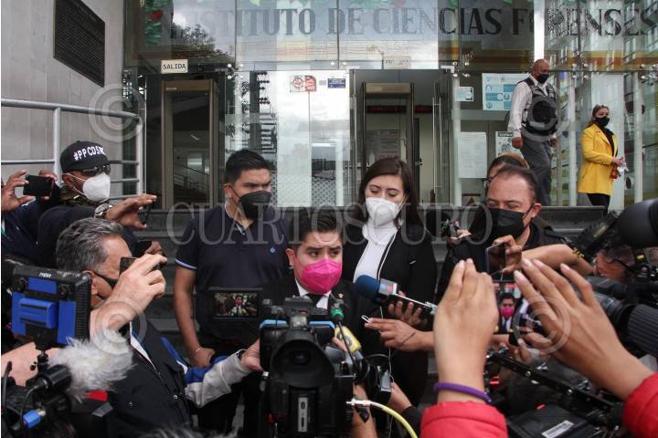 Aspectos de conferencia a medios a las afueras del Instituto de Servicios Periciales y de Ciencias Forenses