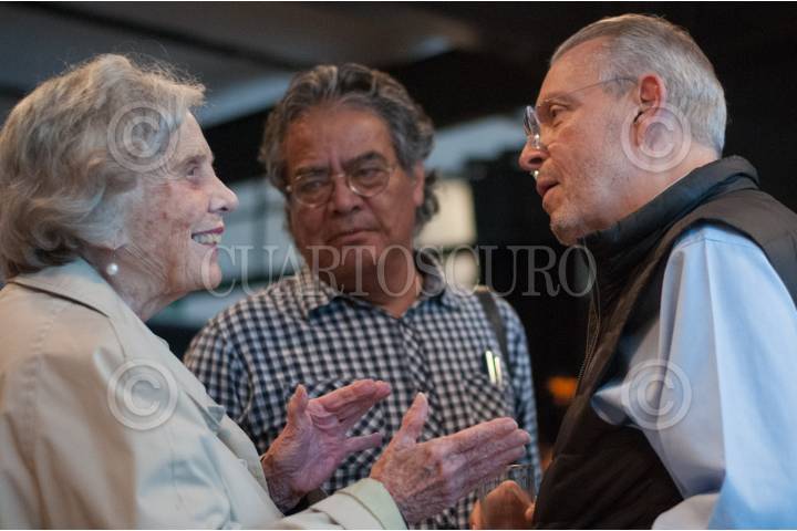 CIUDAD DE MÉXICO, 22AGOSTO2017.- La escritora Elena Poniatowska, el fotógrafo Pedro Valtierra y José Carreño Carlón, director del Fondo de Cultura Económica, durante la presentación del documental La muñeca tetona: Salinas, el poder y los intelectuales, de los periodistas Diego Enrique Osorno y Alexandro Alderete. FOTO: DIEGO SIMÓN SÁNCHEZ /CUARTOSCURO.COM