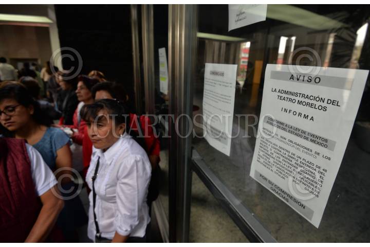 TOLUCA, ESTADO DE MÉXICO, 11MAYO2018.- Personas que adquirieron boletos para el concierto de Amanda Miguel y Diego Verdaguer para el 10 de Mayo en el Teatro Morelos, acudieron a pedir el reembolso de su dinero después de haber sido cancelado el concierto, personal del DIFEM dijo que respaldará legalmente al público por el incumplimiento de la empresa contratante. FOTO: ARTEMIO GUERRA BAZ /CUARTOSCURO.COM