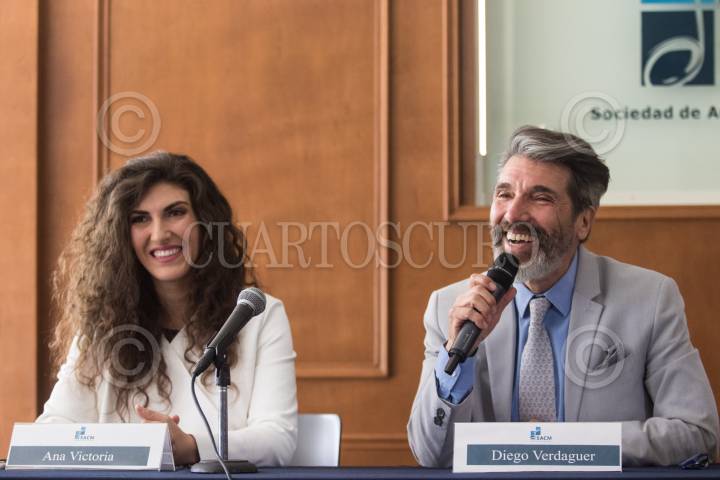 CIUDAD DE MÉXICO, 07AGOSTO2019.- El cantante Diego Verdaguer fue reconocido con la presea Clave de Sol por la Sociedad de Autores y Compositores de México, por sus 50 años de trayectoria. En la imagen, con Ana Victoria, hija del argentino. FOTO: ISAAC ESQUIVEL /CUARTOSCURO.COM