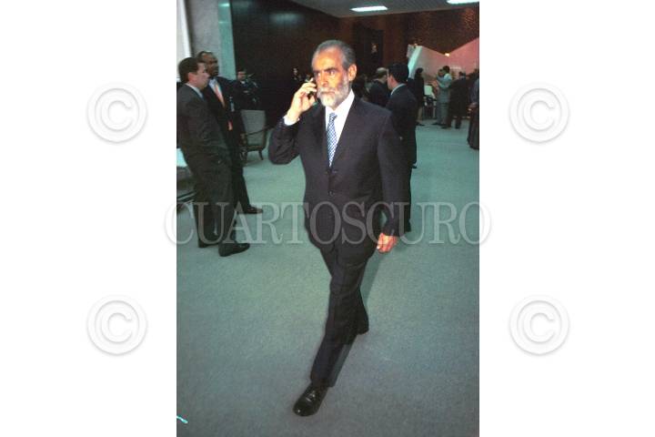A su salida de la ainuguración de la 17a Conferencia Regional Americana de Seguridad y Justicia, el senador Diego Fernandez de Cevallos no emitió declaraciones sobre la negativa de la cámara alta para que el presidente Fox viajara a Canadá y Estados Unidos. FOTO: Pedro Mera/CUARTOSCURO.COM