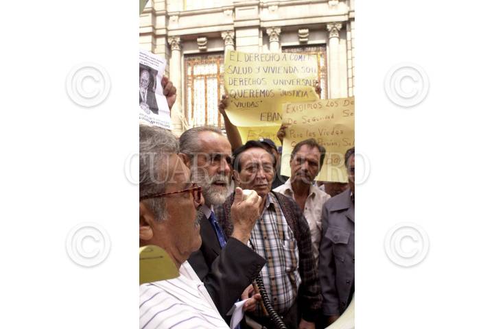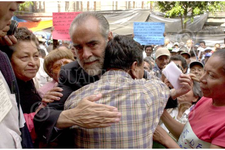 El senador panista Diego Fernández de Cevallos, platico con jubilados y pensionados de Pemex los cuales se mantienen en un plantón frente a la Cámara Alta. FOTO: Victoria Valtierra/CUARTOSCURO.COM