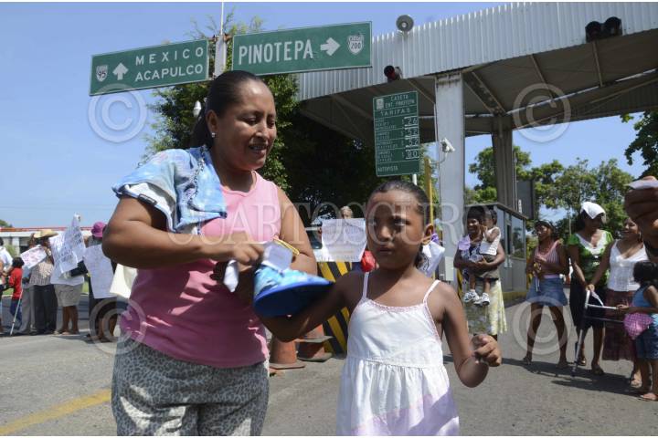 ACAPULCO, GUERRERO, 05OCTUBRE2011.- Un grupo de 70 personas, en su mayoría mujeres, integrantes de la Asociación de Apoyo a Personas Vulnerables del Estado de Guerrero, habitantes de colonias de la periferia del puerto, efectuaron bloqueos intermitentes en el Viaducto Diamante de la autopista del sol, a la altura de la caseta de Metlapil, para exigir al gobierno estatal que cumpla con promesas de campaña olvidadas en los primeros seis meses de la administración del gobernador Ángel Aguirre Rivero. FOTO: BERNANDINO HERNÁNDEZ/CUARTOSCURO.COM