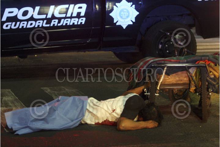 GUADALAJARA, JALISCO, 08MAYO2013.- El día de ayer en la Avenida Revolución y la calle de Constancia una persona de capacidades diferentes, del del sexo masculino y de aproximadamente 35 años de edad, fue asesinada de dos disparos, al lugar arribaron autoridades de la policía de Guadalajara, de la Procuraduría General de Justicia del Estado así como personal y peritos del Instituto Jalisciense de Ciencias Forenses (IJCF), para recabar las evidencias pertinentes y hacer el levantamiento de los restos humanos. FOTO: FERNANDO CARRANZA GARCÍA /CUARTOSCURO.COM