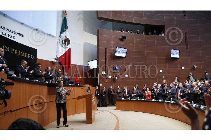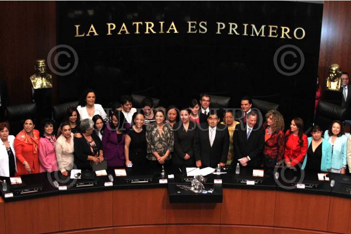 MÉXICO, D.F., 27MAYO2015.- Dilma Rousseff, presidenta de la República Federativa de Brasil, durante su visita a la sesión solemne por su visita de estado en el Senado de la República. En la imagen, la fotografía oficial con legisladoras. FOTO: ADOLFO VLADIMIR /CUARTOSCURO.COM