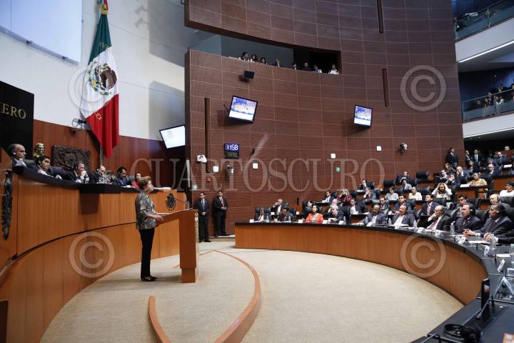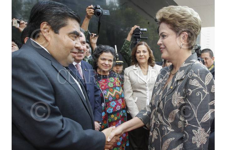 MÉXICO, D.F., 27MAYO2015.- Dilma Rousseff, presidenta de Brasil, fue recibida por el senador Miguel Barbosa, presidente del Senado de la República, para participar en la sesión solemne de la Comisión Permanente del Congreso de la Unión. FOTO: SENADO /CUARTOSCURO.COM