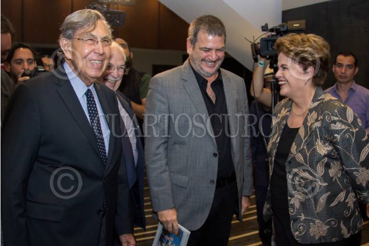 CIUDAD DE MÉXICO, 24ABRIL2017.- Cuauhtémoc Cárdenas, ex candidato presidencial; Pablo Gentili, secretario ejecutivo del Consejo Latinoamericano de Ciencias Sociales (CLACSO), y la expresidente de Brasil, Dilma Rousseff, al termino de la conferencia de prensa con motivo del 50 aniversario CLACSO. Rousseff respondió preguntas respecto a la corrupción, el sistema político, así como a las políticas en torno al género que emitió durante su administración para disminuir las agresiones hacia las mujeres. FOTO: GALO CAÑAS /CUARTOSCURO.COM