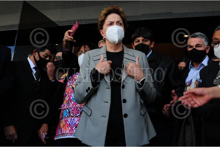 Dilma Rousseff, ex presidenta de Brasil, a su salida de la reunión con legisladores morenistas.