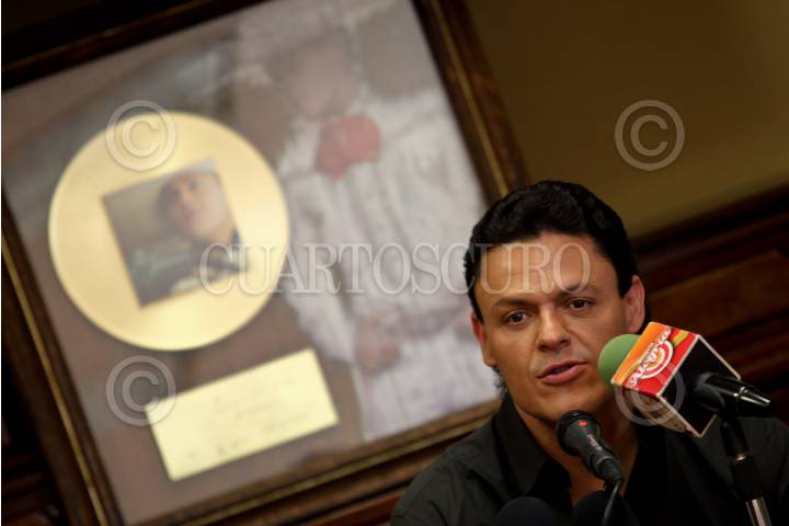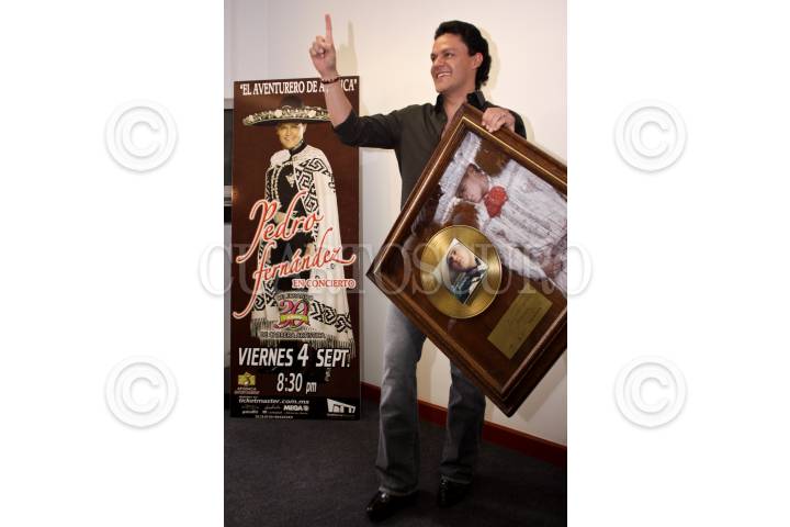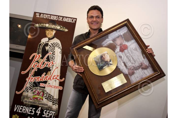 MÉXICO, D.F., 28MAYO2009.- El cantante Pedro Fernandez recibio Disco de Oro por la ventas de su mas reciente producción discográfica titulada Dime Mi Amor cuyo desarrollo melódico lo hizo irresistible a sus miles de seguidores logrando vender mas de 45 mil copias; para festejar 30 años de carrera ofrecerá 3 grandes conciertos, Monterrey, Ciudad de México y Guadalajara. FOTO: RODOLFO ANGULO/CUARTOSCURO.COM