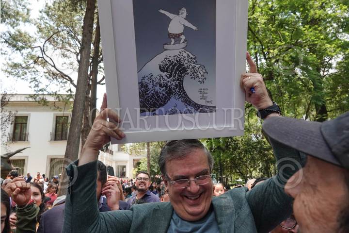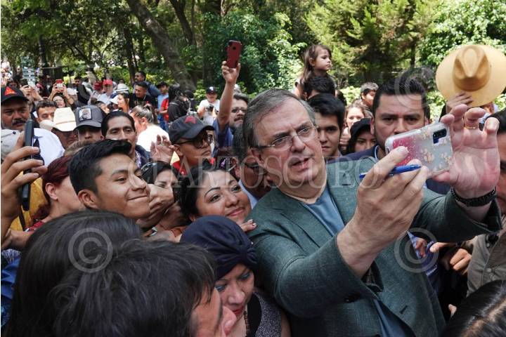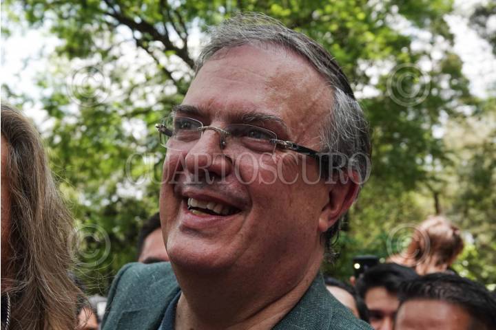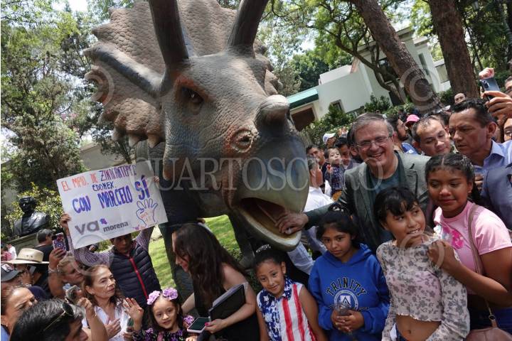 El canciller Marcelo Ebrard durante la exposición "Dinos en los Pinos" en el Centro Cultural Los Pinos