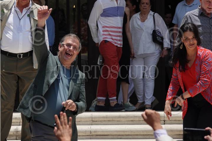 El canciller Marcelo Ebrard acompañado de su esposa Rosalinda Bueso inauguraron la exposición "Dinos en los Pinos" en el Centro Cultural Los Pinos