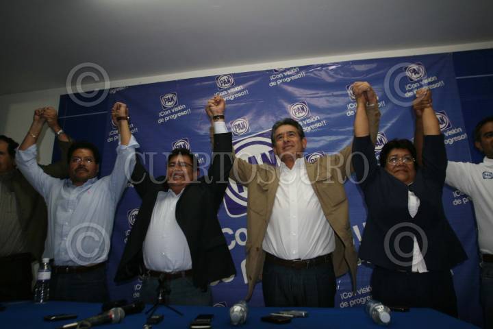 OAXACA, OAXACA, 19FEBRERO2012.- Con el 95 por ciento de las casillas computadas el presidente estatal del PAN dio a conocer el triunfo del exgobernador priista, Diódoro Carrasco Altamirano, con un total de 12 mil 169 votos, como ganador de la primera fórmula al senado de la República, superando al ex-delegado de la Sedesol, Huberto Aldaz, quien alcanzó solamente 6 mil 310 votos. FOTO: ARTURO PÉREZ ALFONSO /CUARTOSCURO.COM