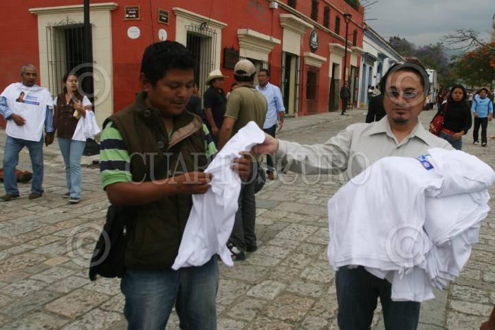 OAXACA, OAXACA, 30MARZO2012.- Militantes del Partido Acción Nacional entregan playeras alusivas a la campaña de Diódoro Carrasco Altamirano, quien compite al Senado. FOTO: ARTURO PÉREZ ALFONSO /CUARTOSCURO.COM
