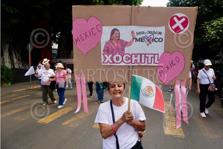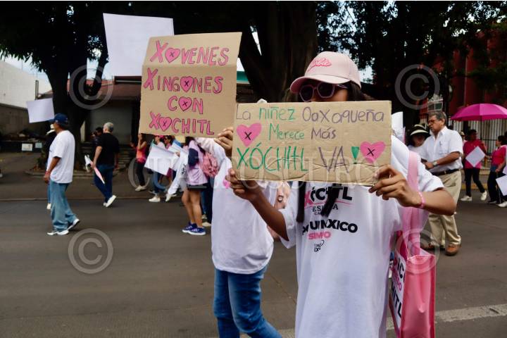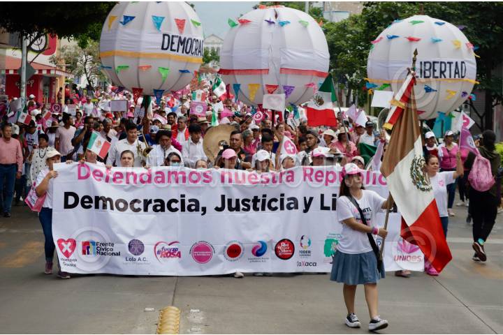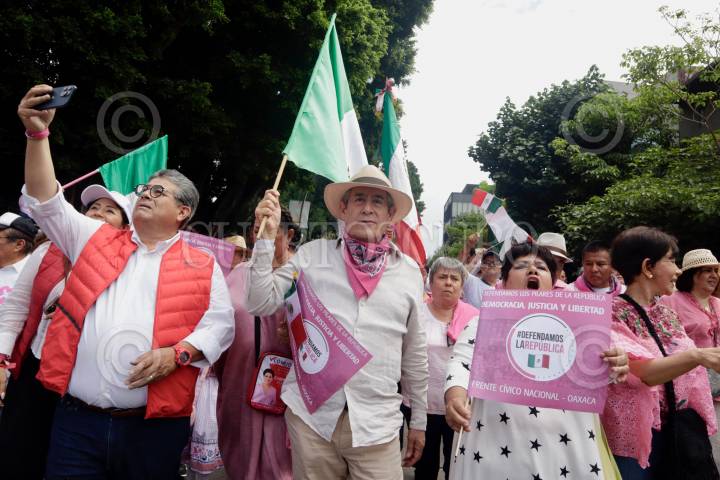 OAXACA, OAXACA, 19MAYO2024.- Al menos mil 500 personas participaron en la capital de Oaxaca en la marcha “Defendamos la República”, convocada a nivel nacional en apoyo a Xóchitl Gálvez, candidata a la presidencia por la alianza Fuerza y Corazón por México, y en defensa de la democracia. En la manifestación participaron simpatizantes de los partidos que conforman la alianza, entre ellos el ex gobernador de Oaxaca, Diódoro Carrasco Altamirano (1992 - 1998). FOTO: CAROLINA JIMÉNEZ/CUARTOSCURO.COM