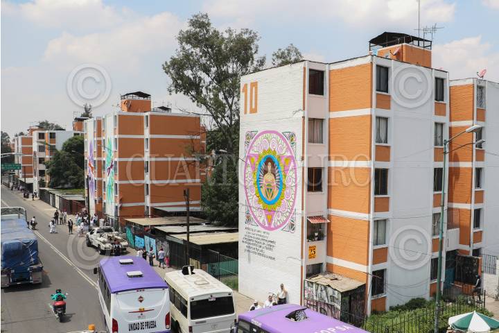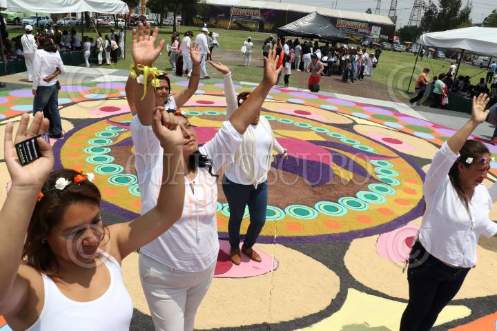 CIUDAD DE MÉXICO, 19AGOSTO2017.- Centenares de personas acudieron a la inauguración de las 29 mandalas monumentales plasmadas en las paredes de los edificios de la Unidad Habitacional Vicente Guerrero así mismo participaron en una meditación masiva realizado en el camellón de Periferico y Eje 6. FOTO: SAÚL LÓPEZ /CUARTOSCURO.COM
