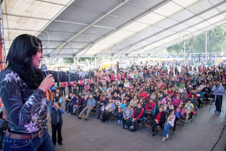 CIUDAD DE MÉXICO, 25NOVIEMBRE2017.- Con talleres psicológicos, autoestima, autoempleo y programas sociales, miles de mujeres asistieron al evento con motivo del día mundial contra la violencia de genero que se realizó en la macroplaza Cuitlahuac ubicada en la delegación Iztapalapa. En la imagen la delegada en Iztapalapa Dione Anguiano. FOTO: SAÚL LÓPEZ /CUARTOSCURO.COM