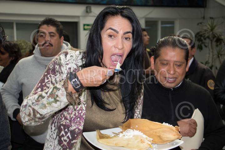 CIUDAD DE MÉXICO, 26ENERO2018.- Dione Anguiano, delegada en Iztapalapa, presentó la séptima feria del Tamal 2018 que se realizará del 27 de Enero al 4 de Febrero en la macroplaza de la delegación. Al termino de la presentación degustó una variedad de tamales que llevaron los expositores. FOTO: SAÚL LÓPEZ /CUARTOSCURO.COM