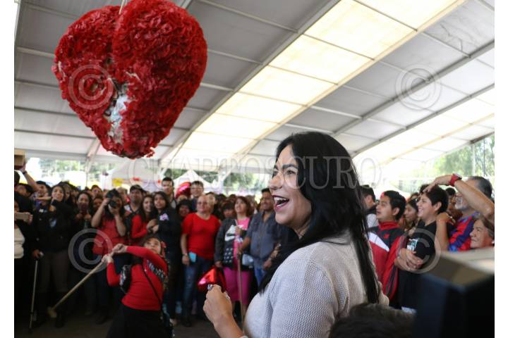 CIUDAD DE MÉXICO, 14FEBRERO2018.- Para conmemorar el dia de San Valentín, la delegada de Iztapalapa Dione Anguano organizó una Kermés denominada "Besos de Ceniza" realizado en la macroplaza de la delegación donde realizaron un baile para enamorados asi como juegos y actividades para prevenir enfermedades de transmisión sexual. FOTO: SAÚL LÓPEZ /CUARTOSCURO.COM