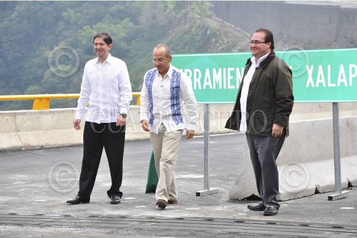XALAPA, VERACRUZ., 23NOVIEMBRE2012.- El presidente de la República Mexicana Felipe Calderón Hinojosa inauguró junto con el gobernador del estado Javier Duarte de Ochoa, el tramo Corral Falso-Banderilla del libramiento Xalapa en su segunda etapa; sin embargo, su apertura será en próximos días. También, estuvo presente Dionisio Pérez Jácome, secretario de Comunicaciones y Transportes. FOTO: JAN VÁZQUEZ /CUARTOSCURO.COM