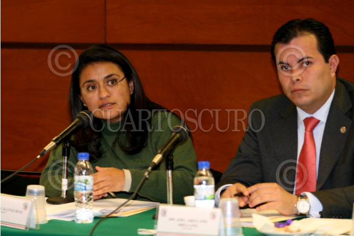 MÉXICO D.F. 22ENERO2008.-La diputa del Aleida Aalavez y el Diputado Joel Areyano, durante la reunión de trabajo de la primera comisión de la Comisión Permanente en la Cámara de Diputados. FOTO: GUILLERMO PEREA/CUARTOSCURO.COM