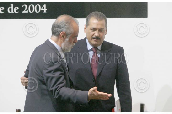 MEXICO D.F 16 NOVIEMBRE 2004.- Diego Fernández de Cevallos, presidente de la Cámara Alta se despide de Manlio Fabio Beltrones presidente de la Mesa directiva de la Cámara de Diputados, durante el 180 Aniversario de la Rendición de cuentas y fiscalización en México. FOTO: Eunice Adorno/CUARTOSCURO.COM