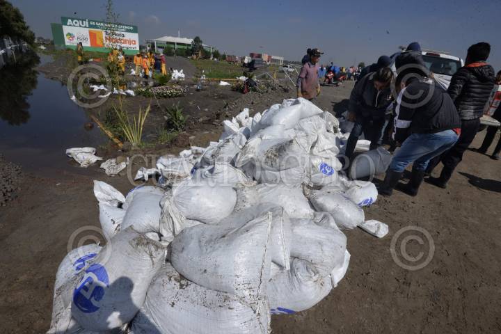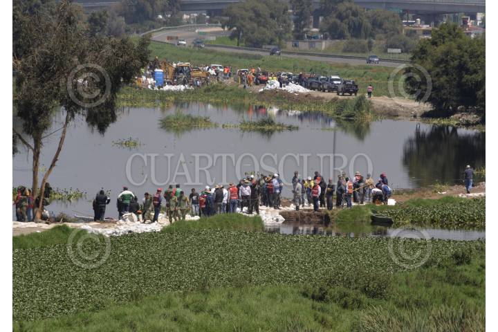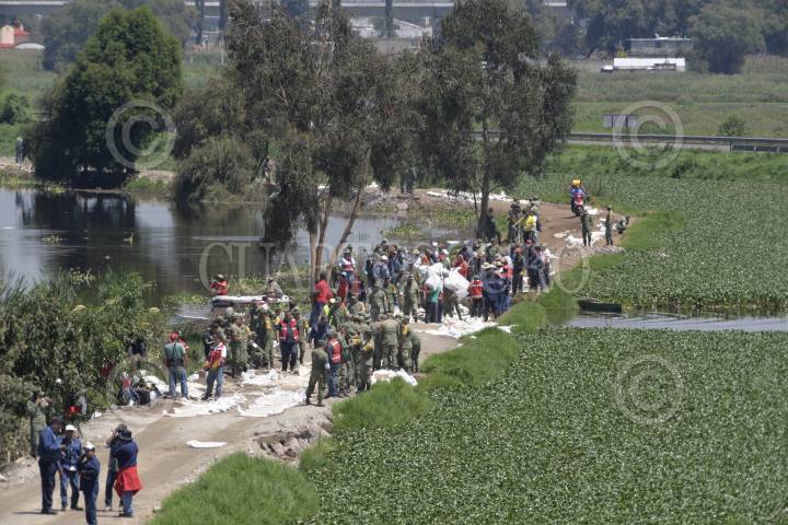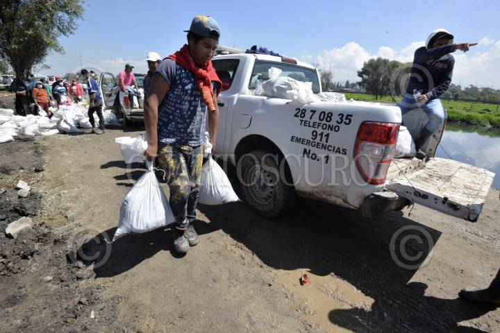 SAN MATEO ATENCO, ESTADO DE MÉXICO, 03SEPTIEMBRE2018.- Personal del Ejército, CONAGUA y voluntarios continúan trabajando en la reparación de la fractura del bordo del Río Lerma, con costales están llevando a cabo la reparación. FOTO: ARTEMIO GUERRA BAZ /CUARTOSCURO.COM
