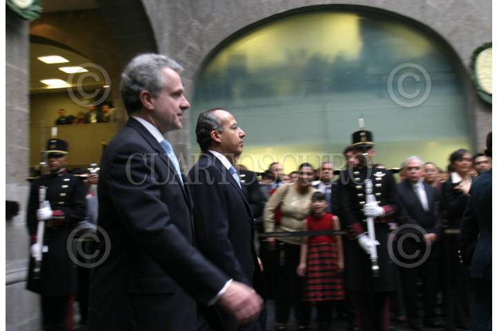 MÉXICO, D.F., 18OCTUBRE2007.- Felipe Calderón Hinojosa, Presidente de Méxicó y Santiago Creel, Presidente de la Mesa Direciva del Senado, encabezaron la guardia de honor en el monumento a Belisario Dominguez en la Cámara de Senadores. FOTO: MOISÉS PABLO/CUARTOSCURO.COM